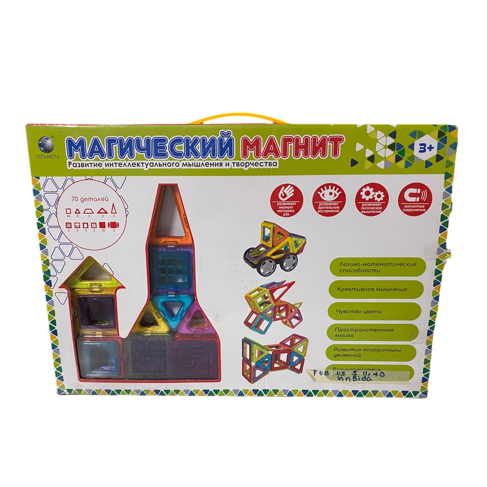 Desarrolla el pensamiento intelectual, la creatividad, la percepción visual y habilidades motoras finas, consta de 70 piezas con diferentes figuras con conexión magnética. Material Plástico. Multicolor. Dimensiones 50x35x7 cm. Presentación caja.
