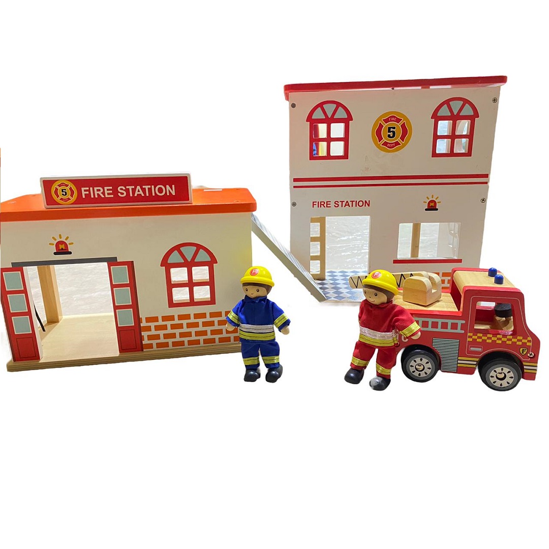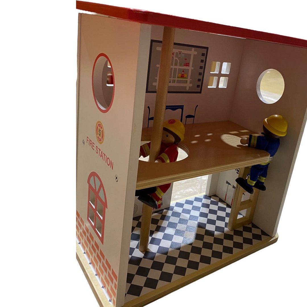 Fascinante estación de bomberos con accesorios. El tamaño compacto del juego hace que sea fácil de almacenar en un estante o en una sala de juegos. La estación de bomberos de madera fomenta el juego creativo e imaginativo mientras los niños perfeccionan sus habilidades de narración. Color blanco y rojo. Material de madera. Dimensiones 27x15x46cm. Presentación en bolsa.