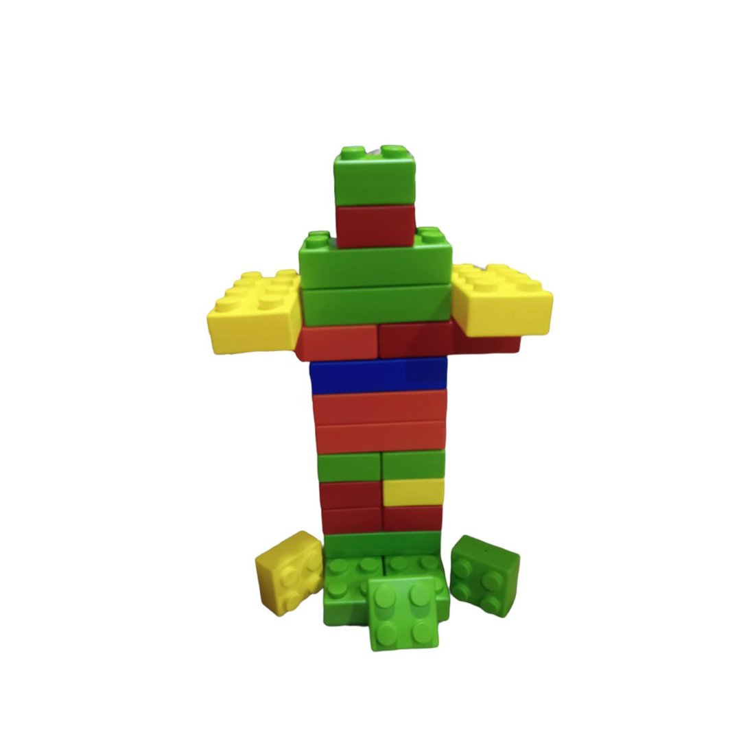 Bloques grandes tipo lego de diferentes colores, que permiten a los niños y niñas crear distintas formas y combinar colores, desarrollando su creatividad y coordinación. Material plástico resistente, incluye 23 piezas . Medidas pieza mas grande 24x12x6cm y la pieza mas pequeña mide 12x12x6cm.Presentacion Bolsa.