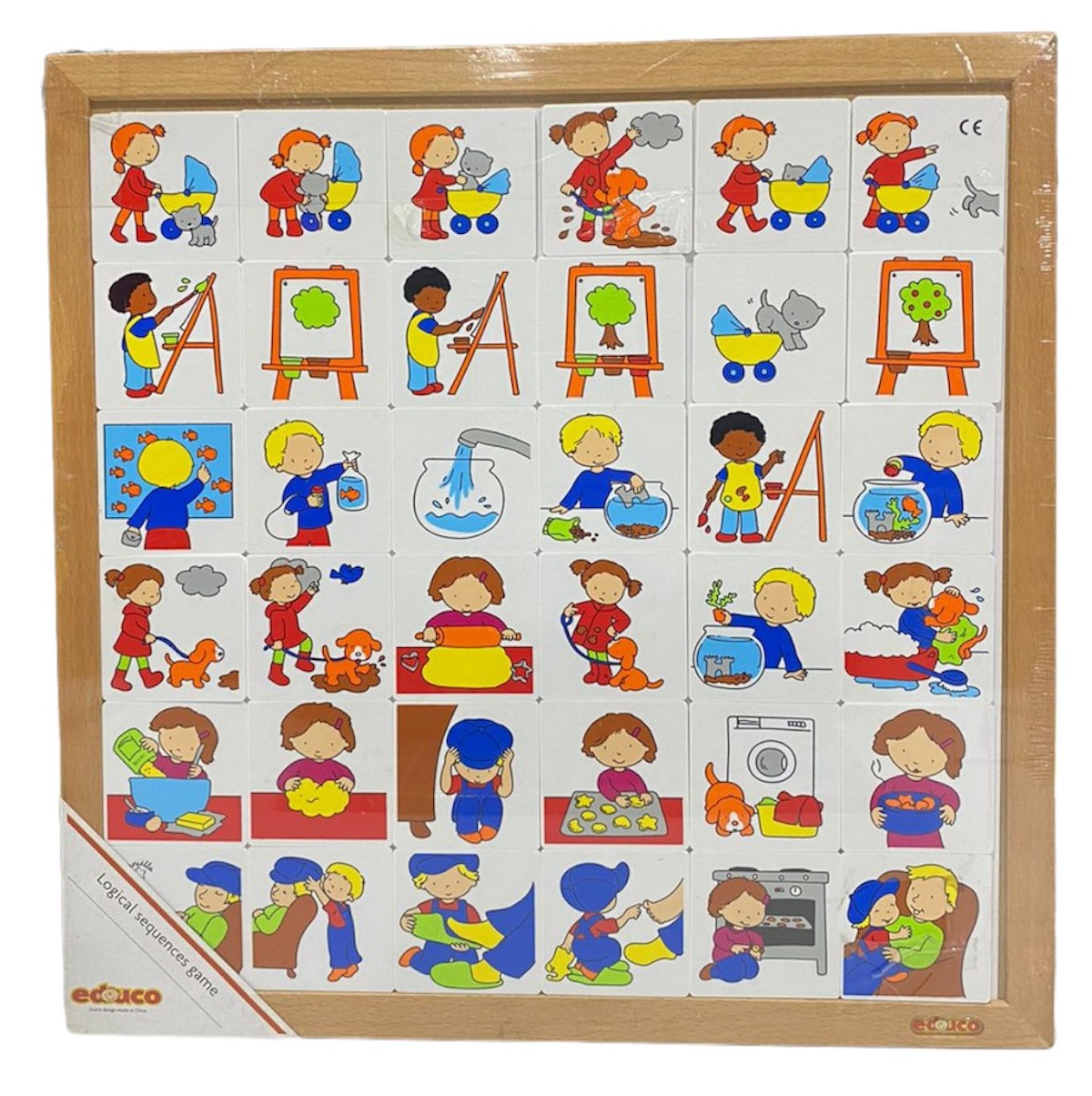 Juego de secuencias lógicas, coloque las tarjetas ilustradas en un orden lógico para contar una historia. Analice y clasifique las tarjetas para crear una historia con un comienzo, un medio y un final distintivo. Los niños resuelven el orden y luego describen la historia para estimular las habilidades lingüísticas. Desarrolla la imaginación, la concentración y la coordinación óculo manual. Material madera y pintura atóxica. Dimensiones 40 x 40 cm. Presentación bolsa