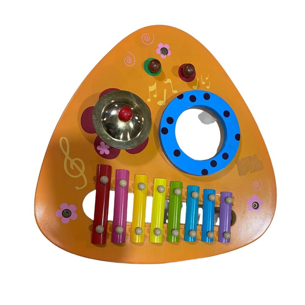 Esta bonita mesa musical para bebes de colores llamativos reúne varios instrumentos musicales con los que los pequeños a partir de 12 meses se divertirán durante horas! Esta compuesto por un xilófono, un platillo, un tambor y dos baquetas. Color Naranjo. Material madera, metal y plástico. Dimensiones 40x39x18cm. Presentación en bolsa.