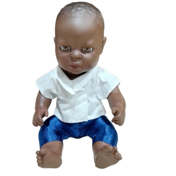 Desarrolla la imaginación en niños y niñas. Muñeco de goma, con ropa color de piel morena. No tóxico. Material goma. Medidas 35 cm. Presentación bolsa.
