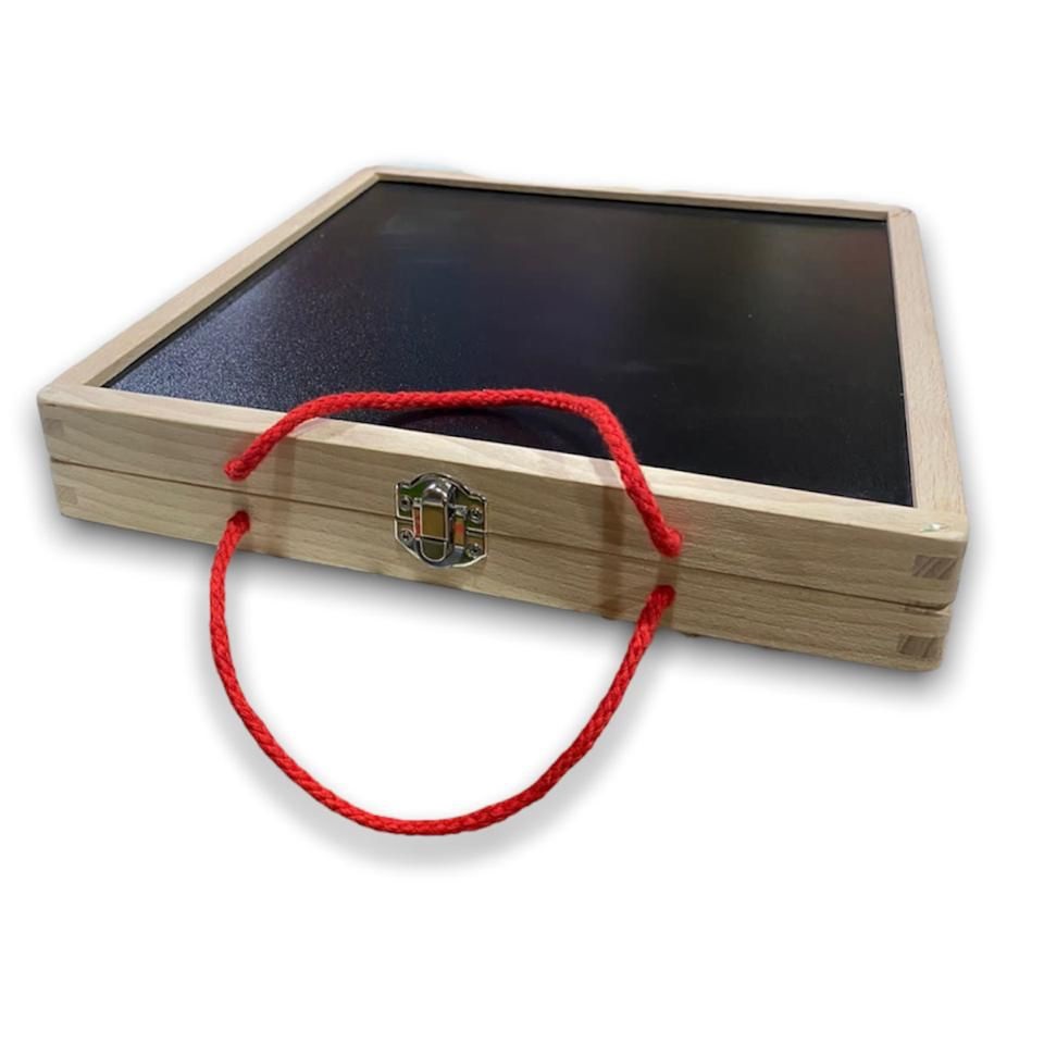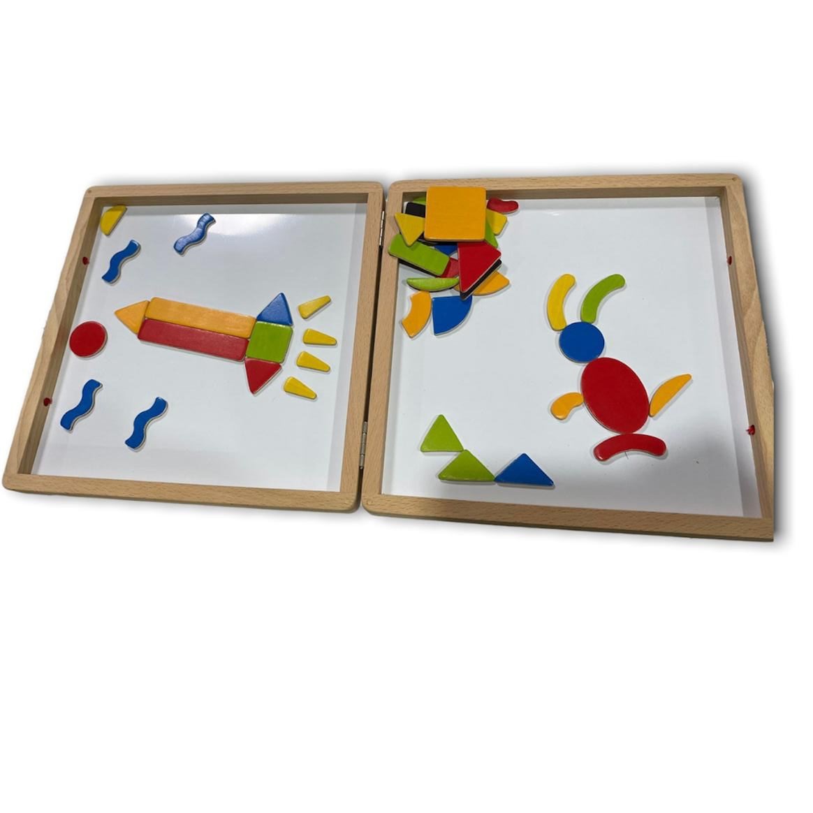 Hermosa cajita didáctica, por un lado es imantada y del otro para tizas. Fomenta la creatividad y la imaginación del niño o niña. Incluye 46 piezas imantadas para armar variadas figuras, también incluye instructivo con patrones. Material madera. Medidas 26 x 26 x 4 cm. Presentación bolsa.