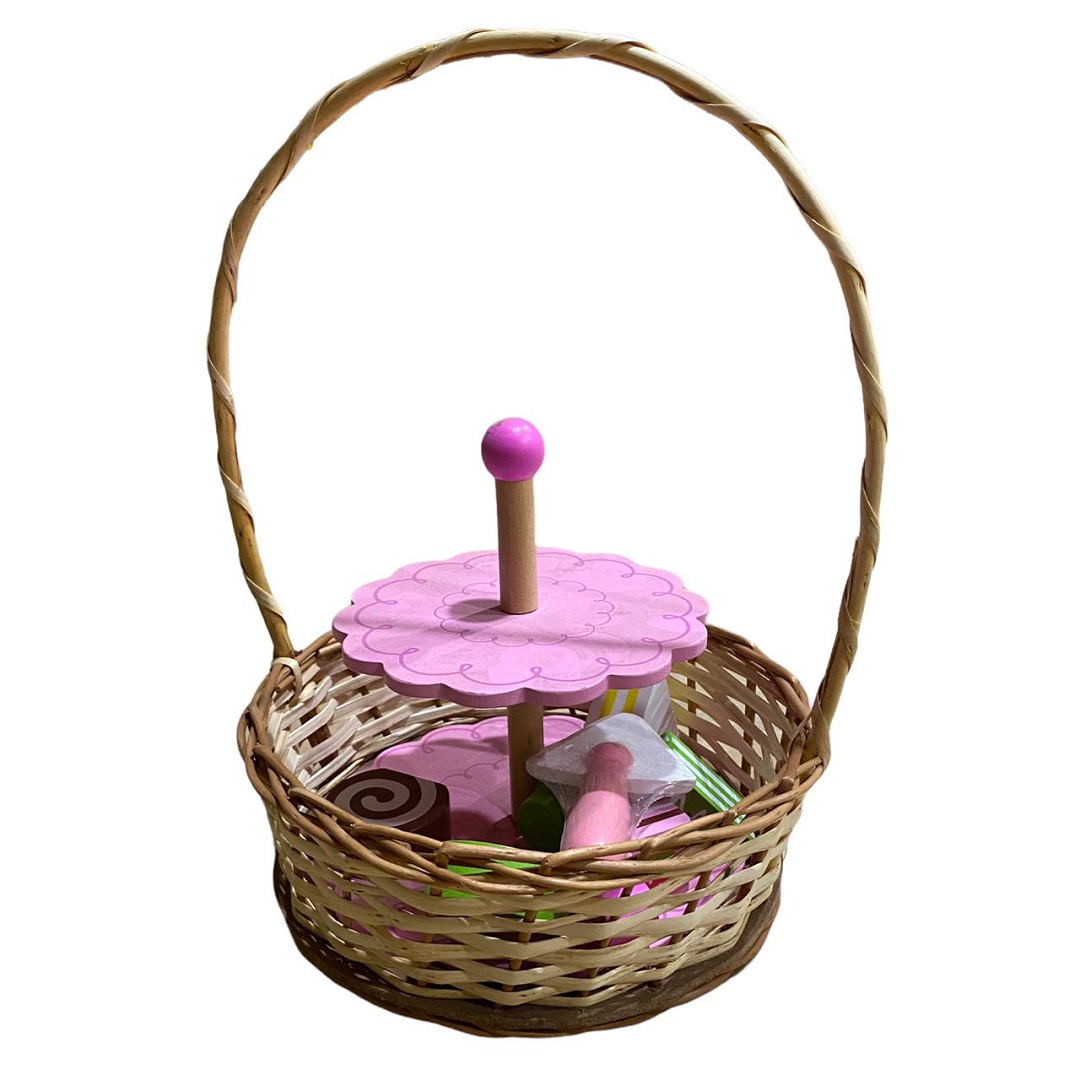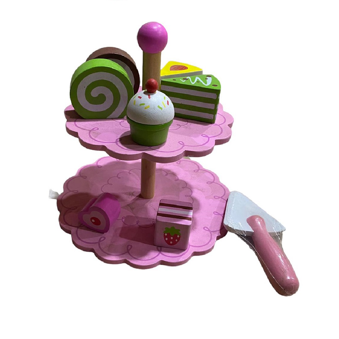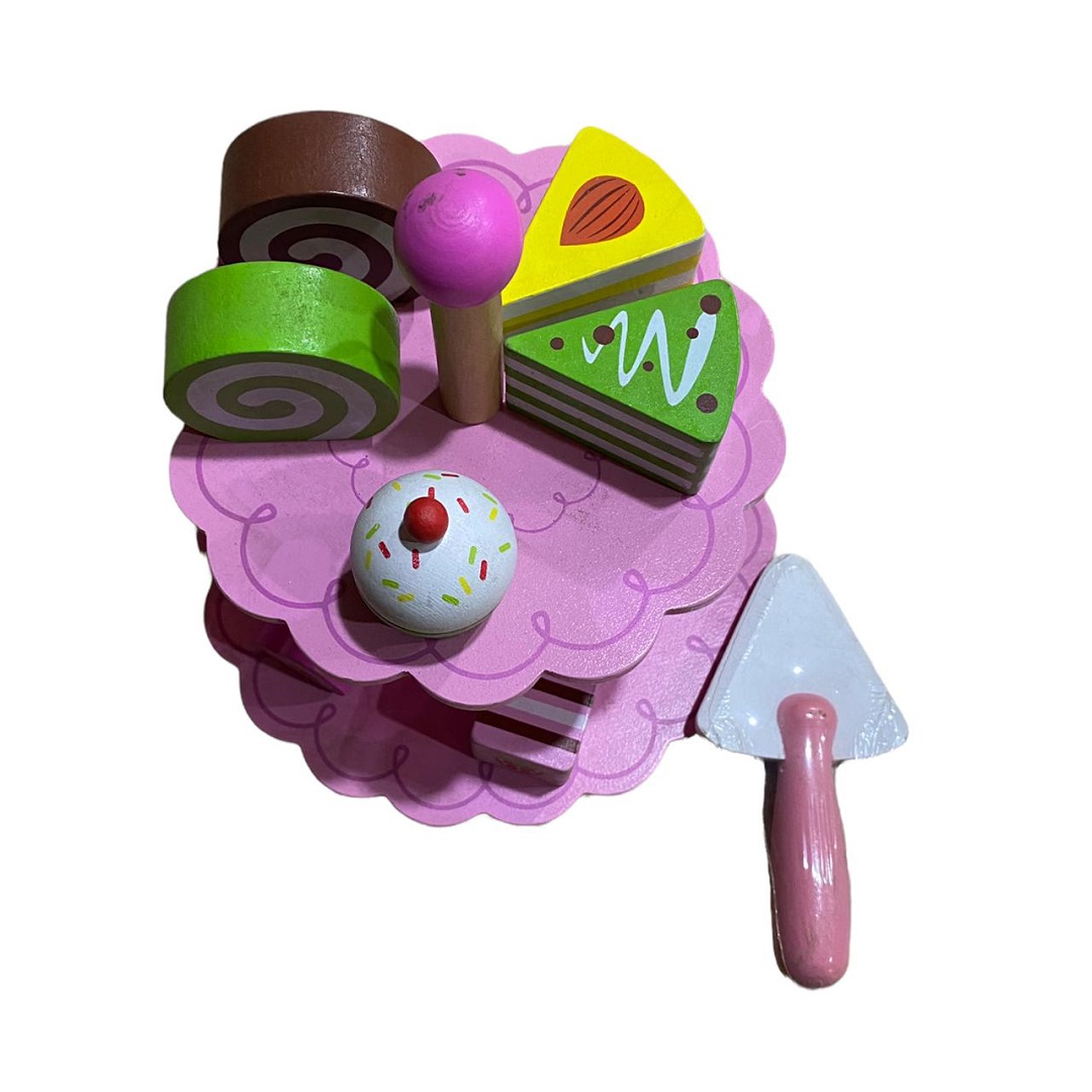Este juego de madera de postres es único en su clase. Cada pieza de postre esta? bellamente diseñada para reproducir alimentos de la vida real. Color Rosado. Material madera. Presentación en bolsa.